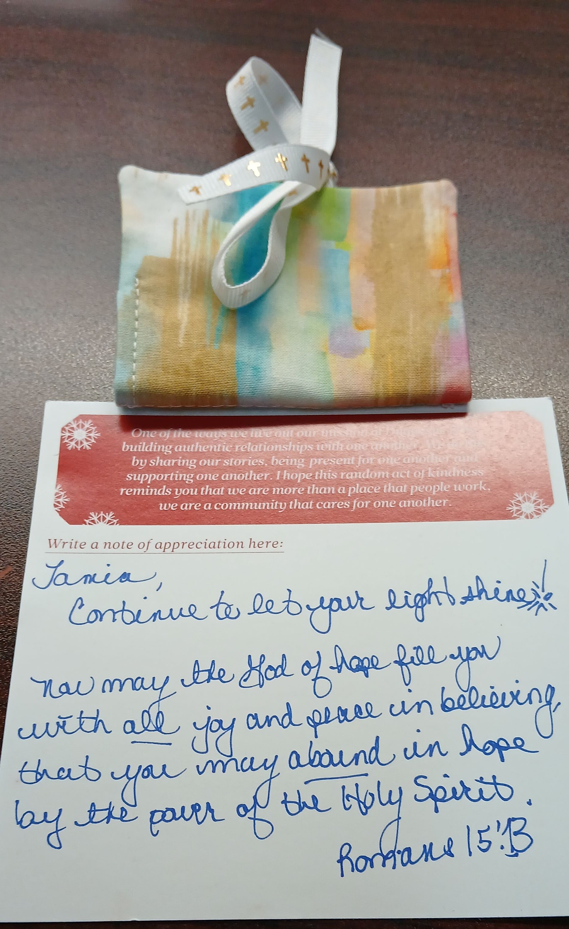 ~Anonymous "Feeling lucky to work in such a great community. Found this in my office!" ~Amber "A very thoughtful, anonymous pick-me-up on this Friday. Thank you for lifting my